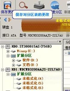 分区完成后,就点击左上角的“保存更改”,按照提示进行分区的格式化。