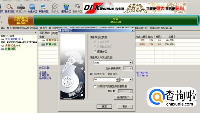 在出现的界面里会看到软件自动选定为“逻辑分区”,我们根据自己的需要把下面的“新分区大小”改为合适的数字。