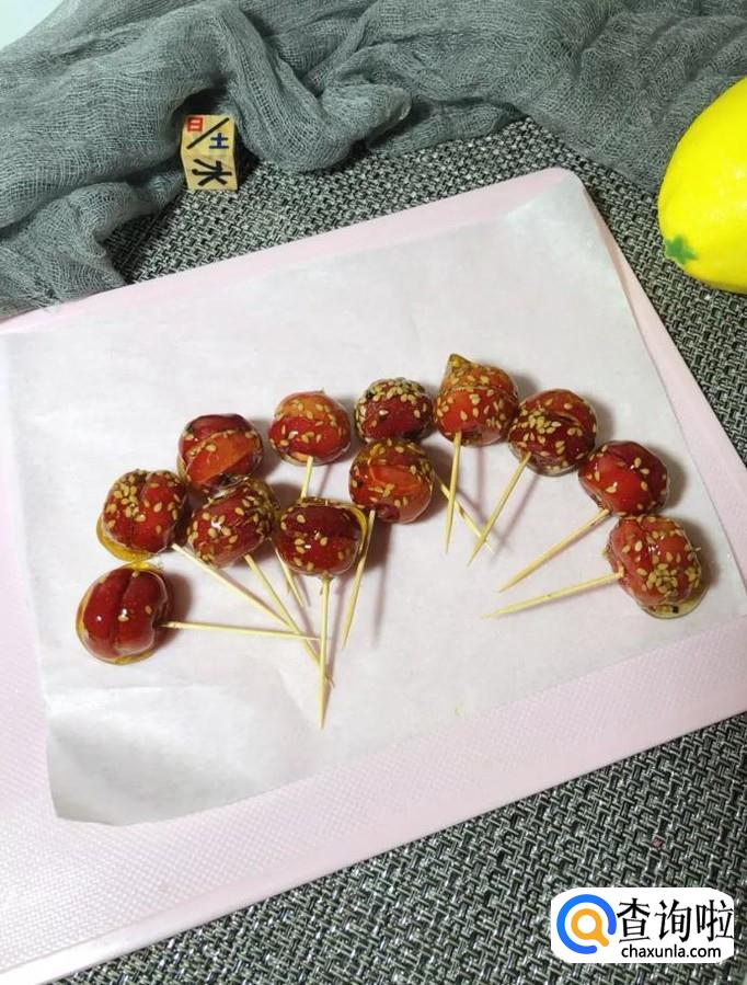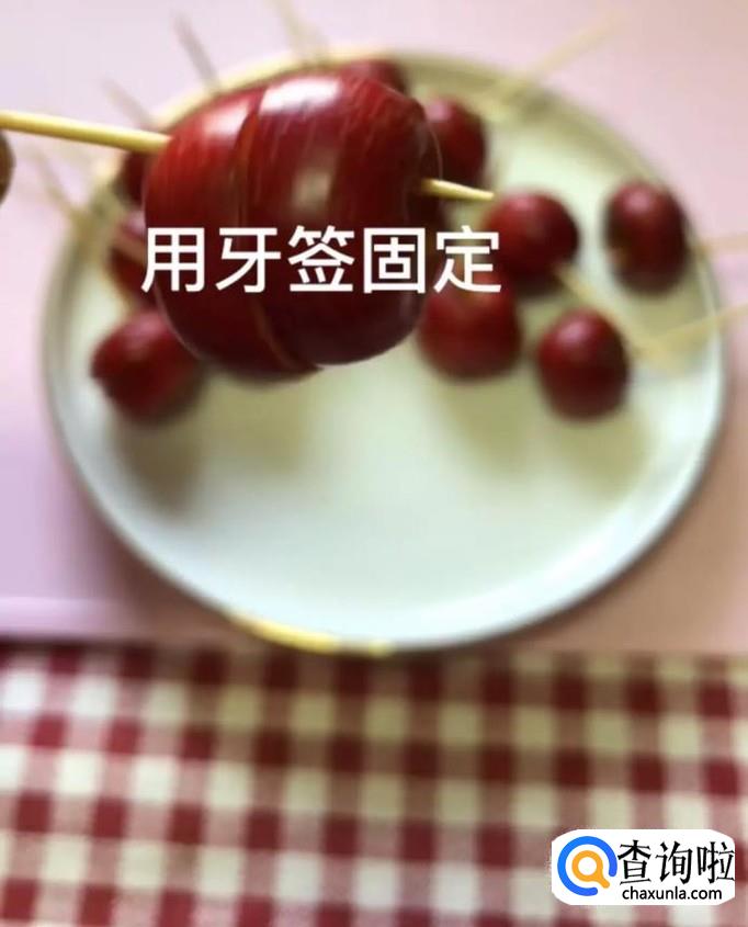 然后用牙签把山楂固定起来,如下图所示。