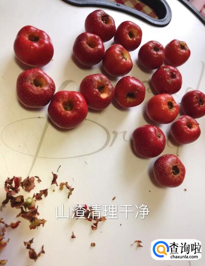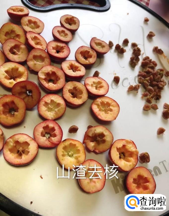 接着用刀把山楂对半切开,去核,如下图所示。