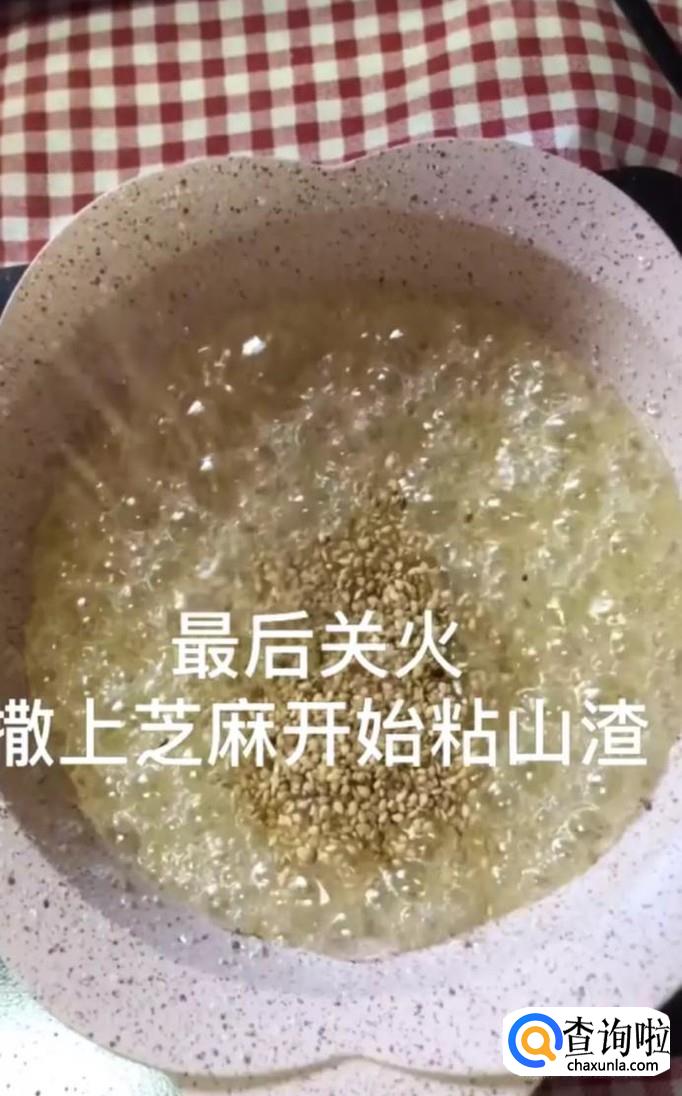 然后往锅中撒入芝麻,如下图所示。