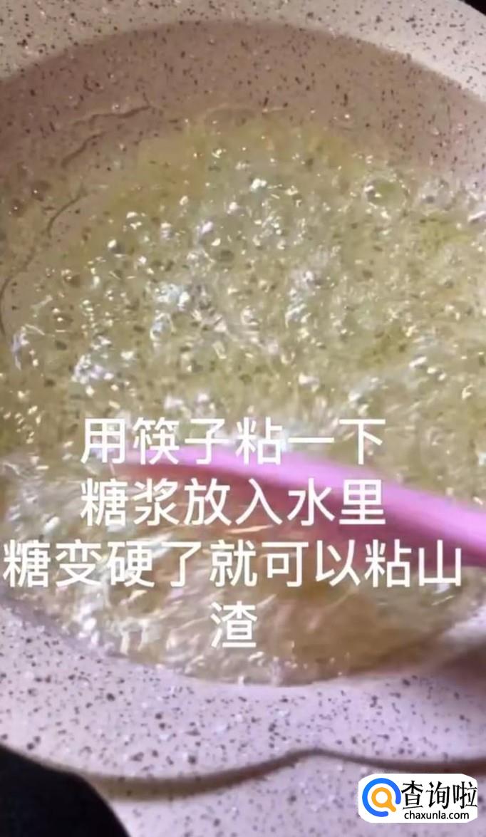 拿筷子沾上适量的冰糖,放入水中会立刻凝固,那么我们的糖就熬好了。