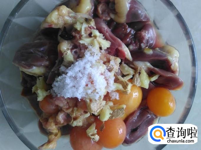 加适量的盐、姜蓉、1勺料酒腌制几分钟。