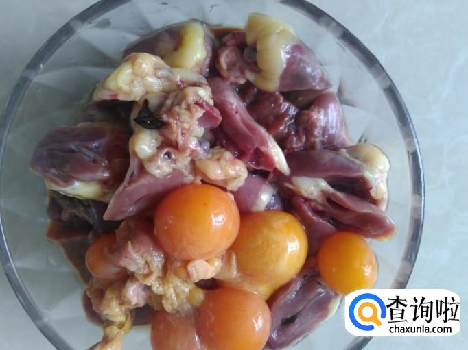 煮沸后,打开盖子放鸡心鸡籽进去翻炒均匀。
