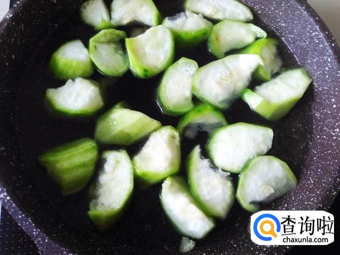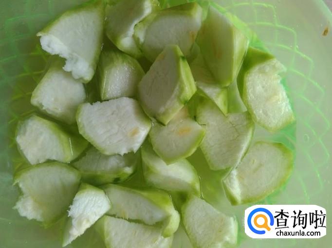 丝瓜1个,鸡心、鸡籽200克,姜蓉、蒜米适量,1勺料酒。
