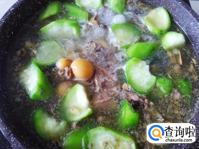 然后打开盖子,加几粒味精搅拌均匀,熄火。非常清甜美味的鸡心鸡籽丝瓜汤就做好了。