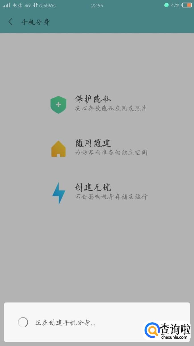 等待差不多20s之后分身空间就创建成功了,可以选择在桌面图标切换或者指纹切换,两者各有各的好处,桌面切换可以不锁屏直接进入,方便快捷,但是会留下桌面图标;指纹极为隐蔽,不怕查手机,但是切换的时候会卡顿一下,不怎么流畅。