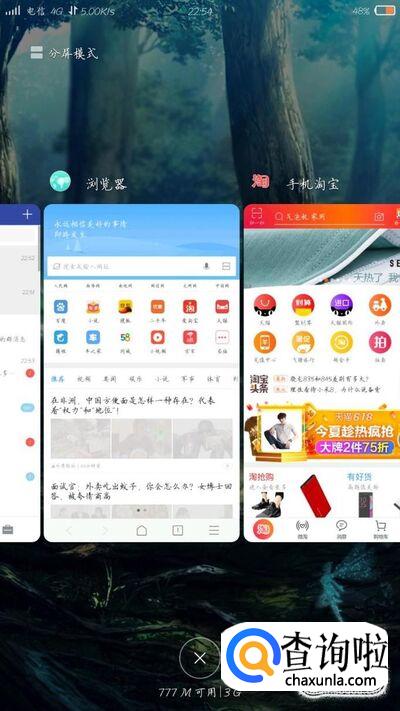 最后我们来测试一下分身空间是否会占用内存资源。为了方便起见,我在原始空间疯狂打开了淘宝,微信,QQ,支付宝这样占资源的应用,然后再打开分身空间查看内存,在切换之后剩余内存反而增加了,可见在切换的时候是压缩了原始空间内存了的,不会增加太多耗电量。
