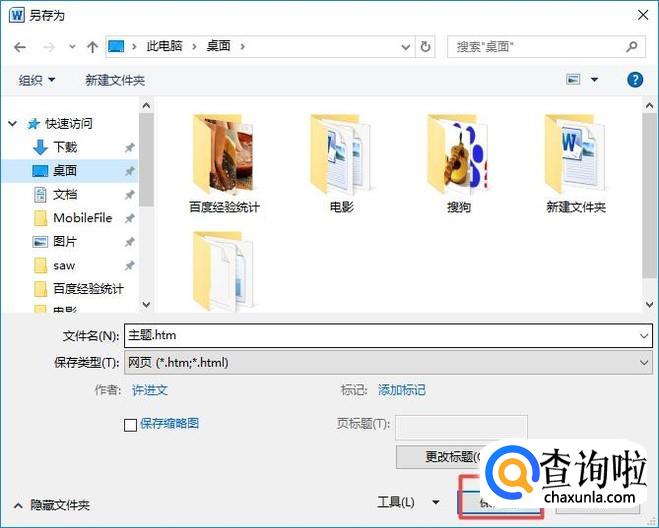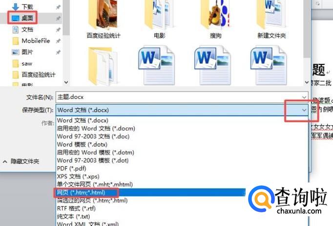 弹出的界面,我们将保存位置设置为桌面,保存类型我们设置成网页;
