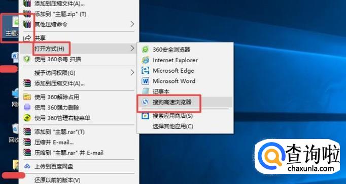 之后我们在桌面上找到我们保存的文件,右击它,弹出的界面,我们点击打开方式,然后选择搜狗高速浏览器;