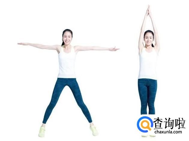 开合跳,通过快速摆臂带动身体跳跃,不仅可以瘦大腿内侧,还可以起到瘦全身的最佳效果,可谓是一举两得。