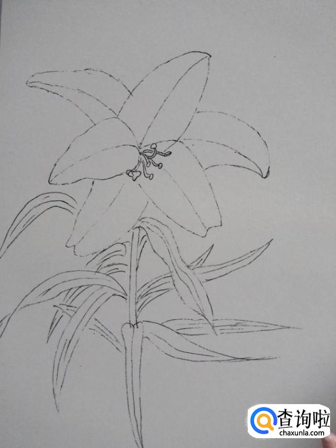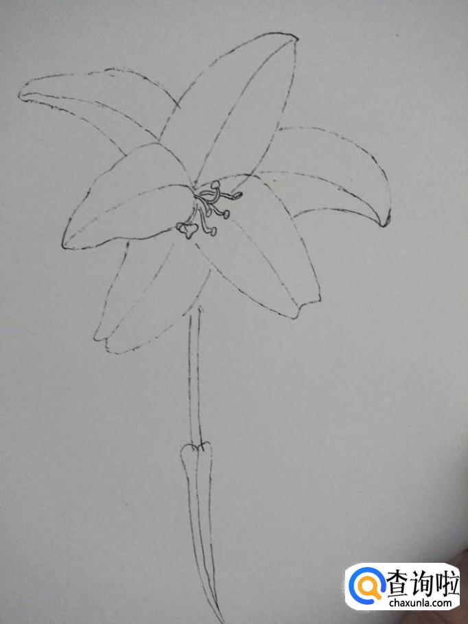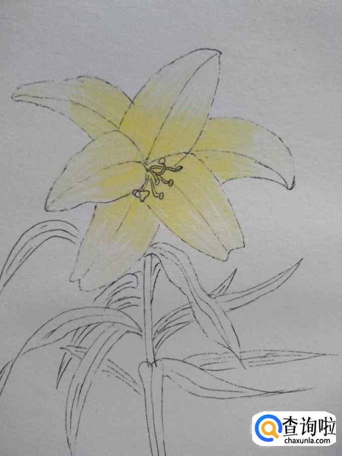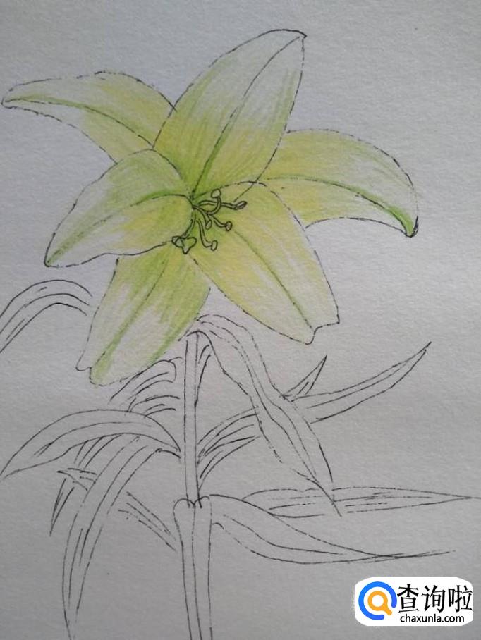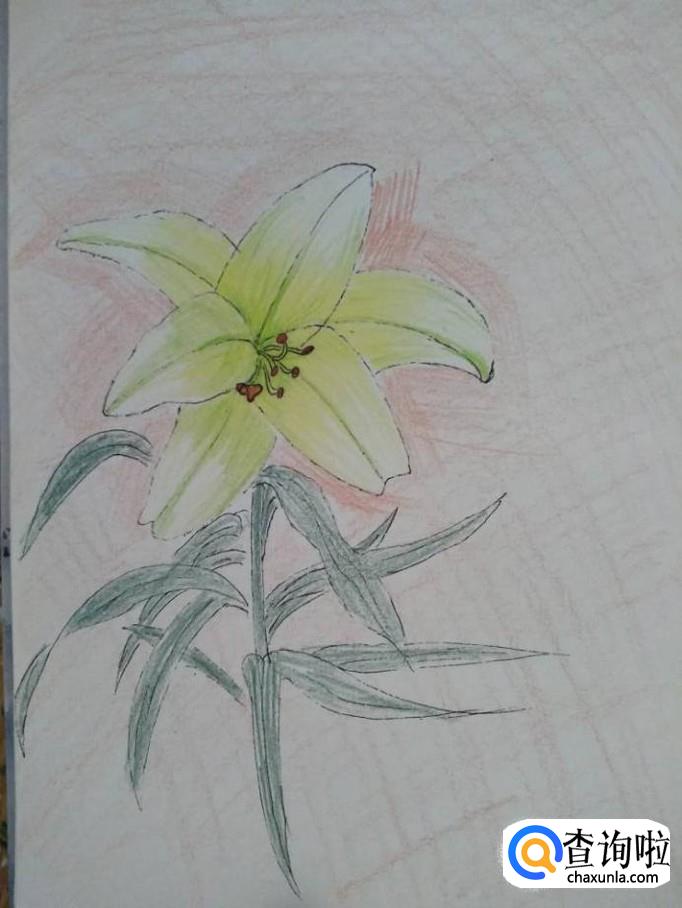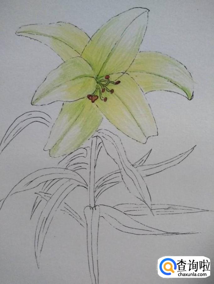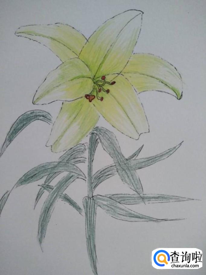 注意花的叶子要稍微比花瓣小一点。上色时要方向一致,下笔不要太重。这样简笔画的百合花就画好了,你学会了吗?
