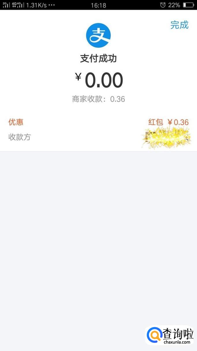 付款成功,自己使用红包付款,没有使用钱,但是对方收到了钱,然后要朋友或亲人再转给自己即可