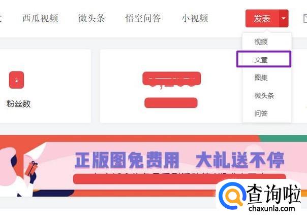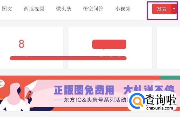 首先,我们打开我们电脑上面的浏览器,然后登录今日头条,进入今日头条后,我们点击上方的发表边上的下拉箭头;