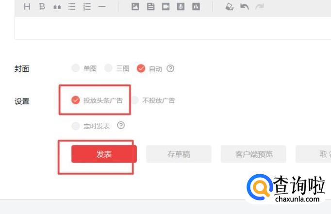 在下方我们找到投放头条广告,将其勾选上,之后点击发表,这样就投放头条广告了。