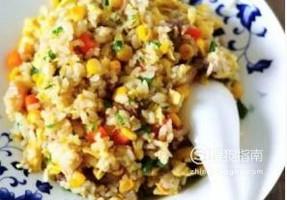 释迦果炒饭:这个做法在盛产释迦果的地区较多见,将处理干净的释迦果果肉与米饭、玉米粒、胡萝卜丁、鸡蛋一起炒,味道别具一格,也很美味。