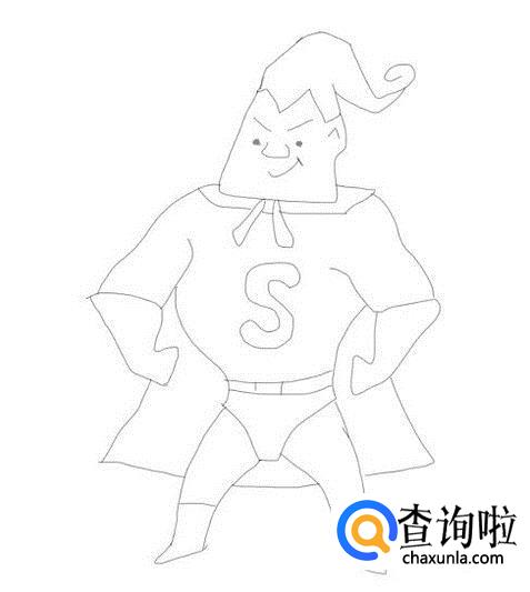 最后在身体的下面画出超人的两条腿及脚部,然后在身体上画出超人的披风,这样简笔画超人就画好了如图所示: