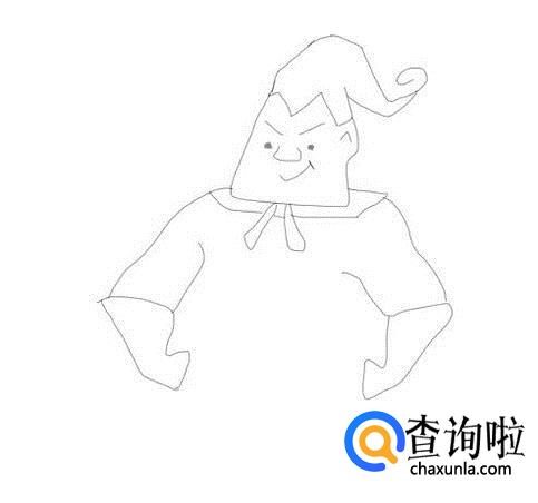 在头部画出超人的脖子,然后再画出超人的两只胳膊及手部,如图所示: