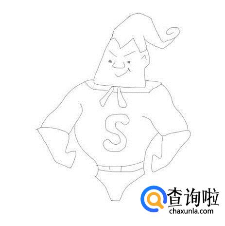 再在两只胳膊的基础上画出超人的身体及身体上面的标志,如图所示: