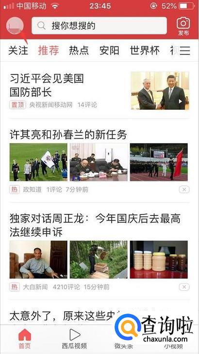 首先我们打开今日头条app登录账号后就点击左上角的头像进入到个人页面。