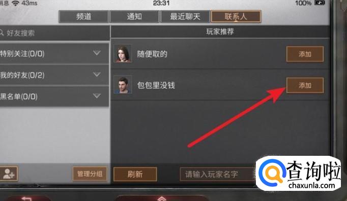 在右侧列表中,可以直接添加好友,然后在左侧列表中查看。