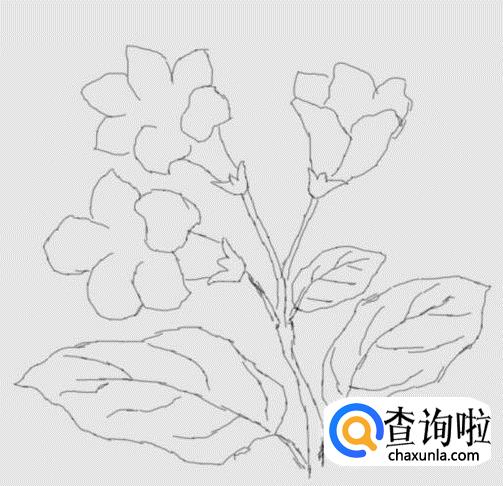 再也值得基础上画出杜鹃花的枝干,如图所示:
