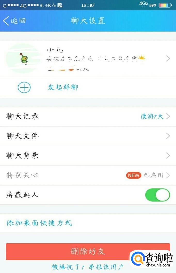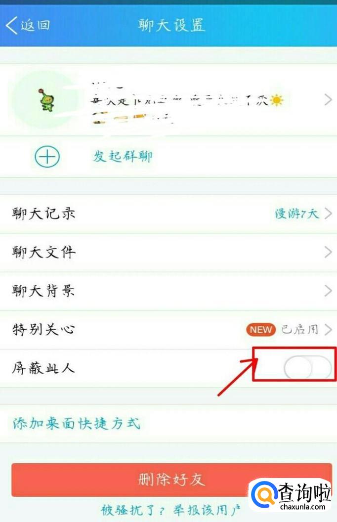 接着,我们在好友的图片内可以看到,它的下方就有一个屏蔽好友的服务,我们将屏蔽好友开启。
