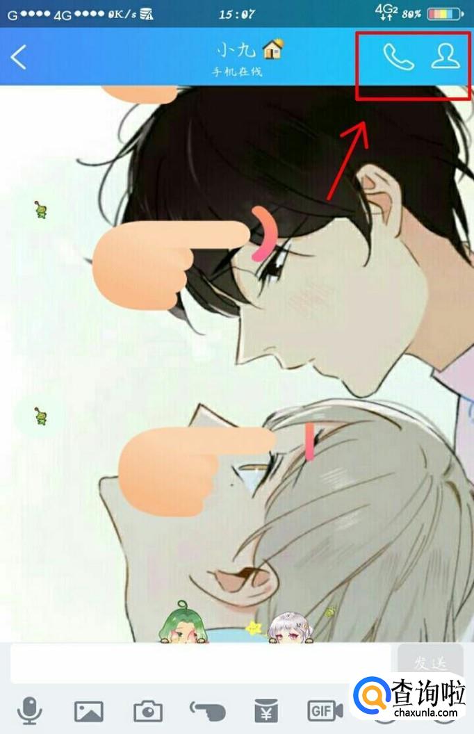 接着,我们在对话框里面可以看到,在它的右上方有一个好友的图形,点击进入。