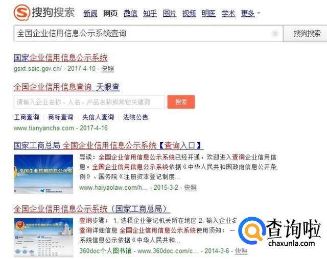 在搜狗上搜索登录“国家企业信息共示系统”或者直接根据下面网址登录网站。http://www.gsxt.gov.cn/index.html