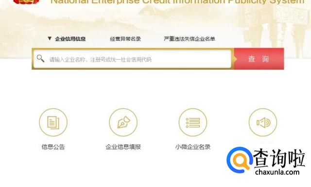 进入“国家企业信息共示系统”首页后,有一个大的搜索框,然后输入想查询企业的名称,点击'查询“