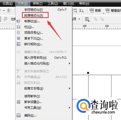 选择文字工具我们在表格内输入文字,然后再在菜单里找到文本选项,点击该选项在其内找到段落格式化选项,如图所示: