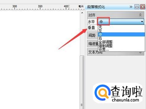 点击段落格式化选项,我们依次设置水平和垂直均为居中,如图所示: