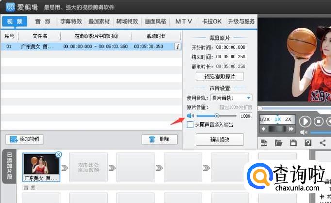 单击一下“原片音量”选项下的蓝色小喇叭