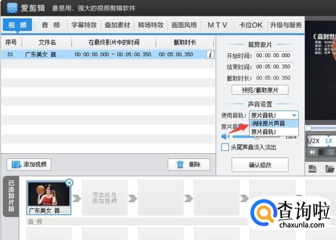 也可以直接在“使用音轨”选项下选择“消除原片声音”