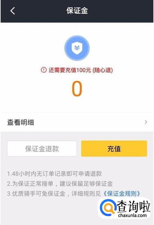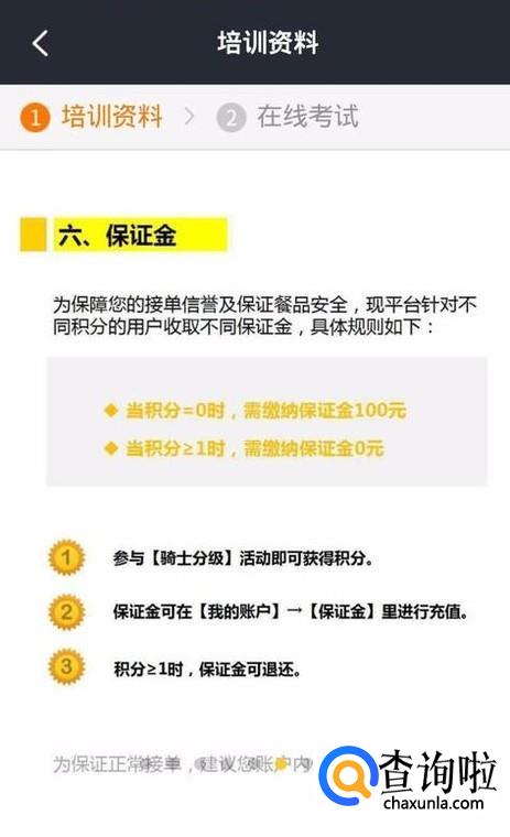 参加完考试,首页会有提示,提醒你需要充值100元作保证金。当积分大于等于1的时候,保证金就可以不用交了。