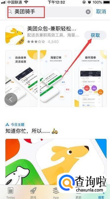 打开手机上的应用商店,在搜索框中输入“美团众包”或“美团骑手”,选择第一个点击进行下载安装。