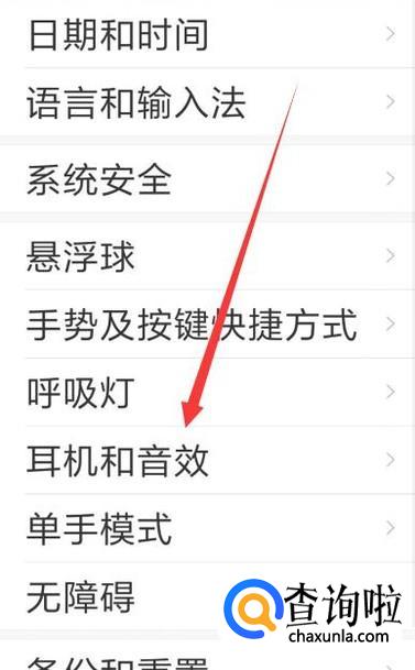 进入之后,点击“耳机和音效”,进入下一页面,如图所示。