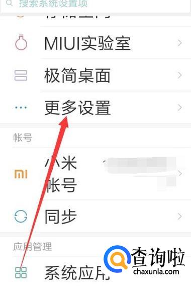 进入之后,点击“更多设置”,进入下一页面,如图所示。