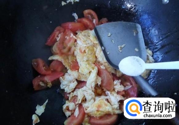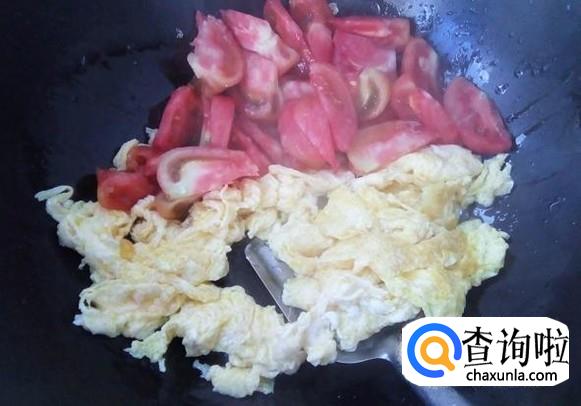 炒制西红柿和鸡蛋的过程中要将西红柿按压一下,使汁液渗出,然后放入适量糖和盐继续翻炒一会,就可以装盘享用了。