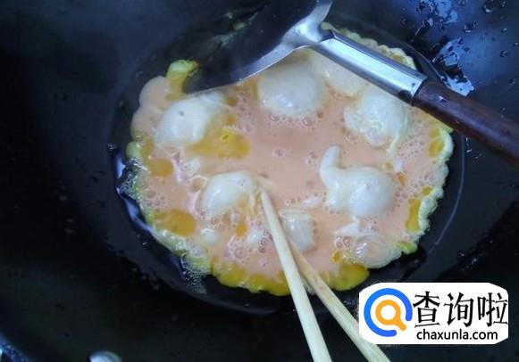 在锅内放入色拉油,油温7成热时放入鸡蛋翻炒。