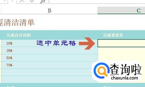 假如我们想要在下面图标的进度条这一列插入对应的进度条,那么首先选中其中某个单元格,如图...