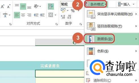 然后依次点击工具栏中的“开始”-“条件格式”-“数据条”,如下图所示;