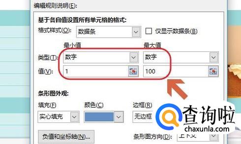 在数据条的右侧会弹出一个窗口,我们点击最下面的“其它规则”,然后就弹出了新建格式规则对话框,如图二...