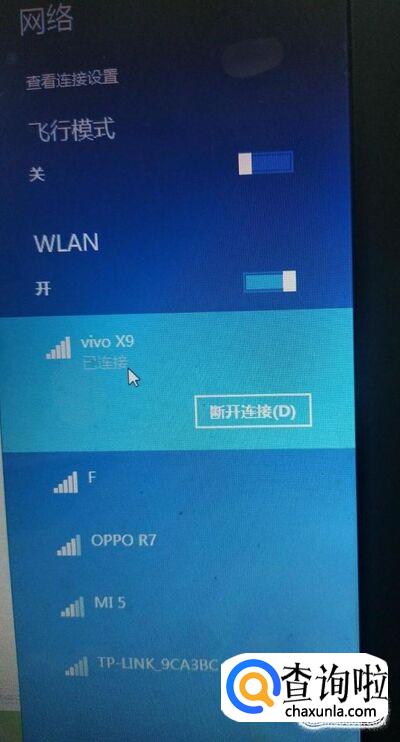 点击“已连接”的无线WiFi,点击“断开连接”。