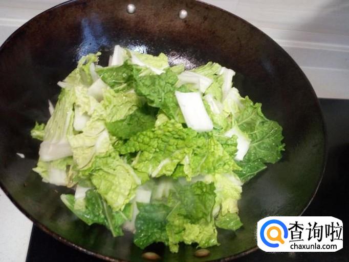 放入大白菜翻炒,放入盐。