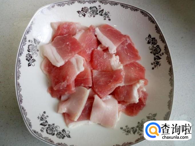 肉用水冲洗一下,控干水分,切成大一些的片。最好用五花肉,我没有五花肉了,就选了些稍带些肥的肉(冻豆腐一定要油大一些才好吃)。