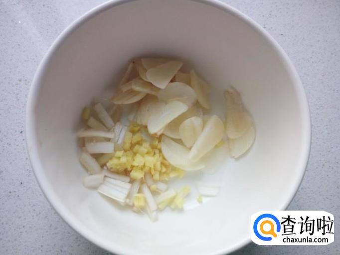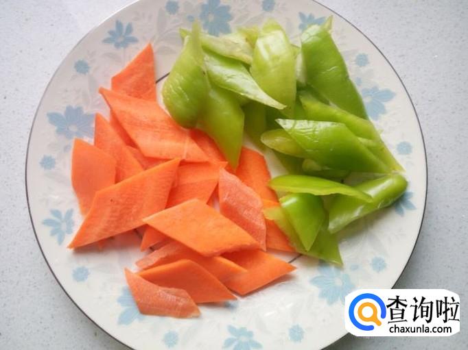 青尖椒,胡萝卜,用水清洗干净,切成薄片。切好葱,姜,蒜,备用。