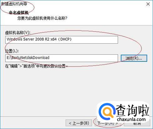 如图所示,命名创建的虚拟机名称。点击"位置→浏览"按钮,选择虚拟机安装的路径。