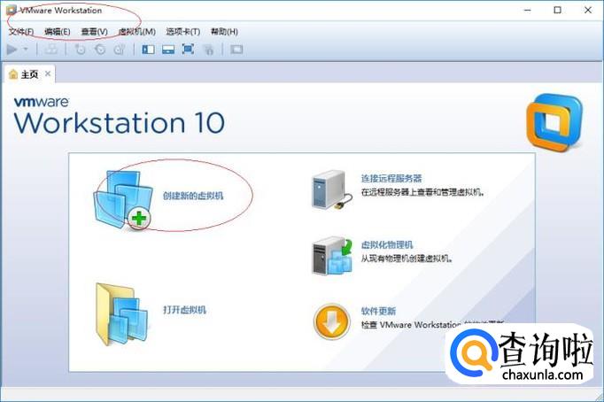 如图所示,唤出"VMware Workstation 10"程序窗口。点击"创建新的虚拟机"图标,通过虚拟机安装操作系统。