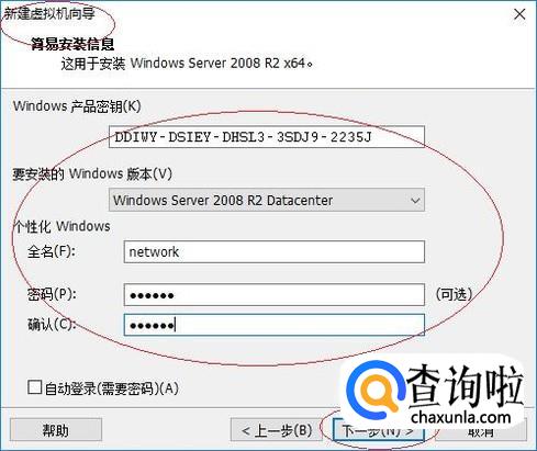 输入Windows产品密钥,如图所示。选择要安装的Windows版本,设置计算机名和登录密码。